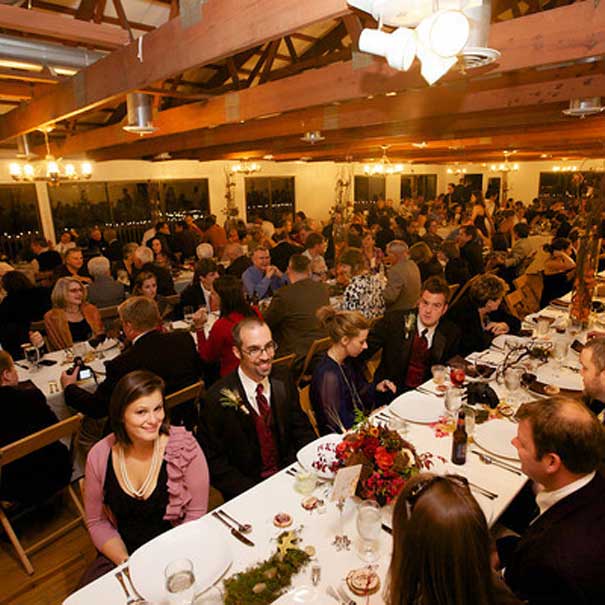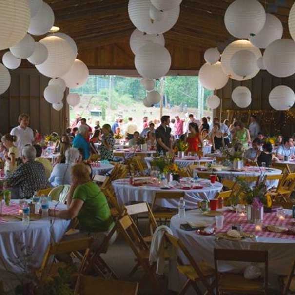 The Dining Hall is best for events of 100-150. We have 100 multi-colored elementary school style chairs and 24 five-foot round tables and 4 six-foot rectangle tables.